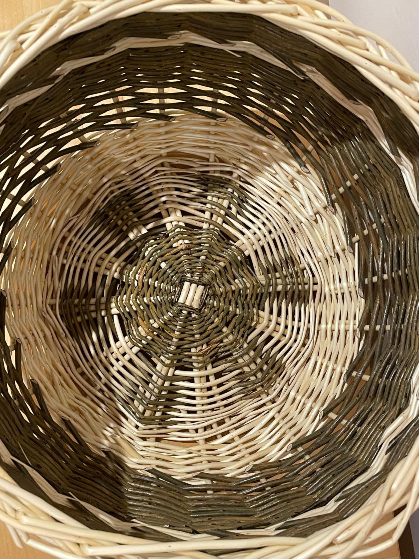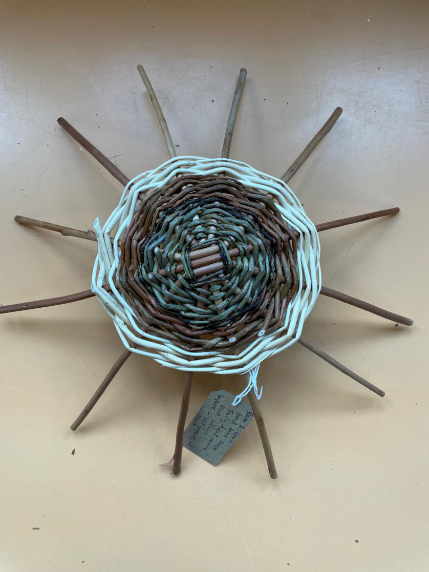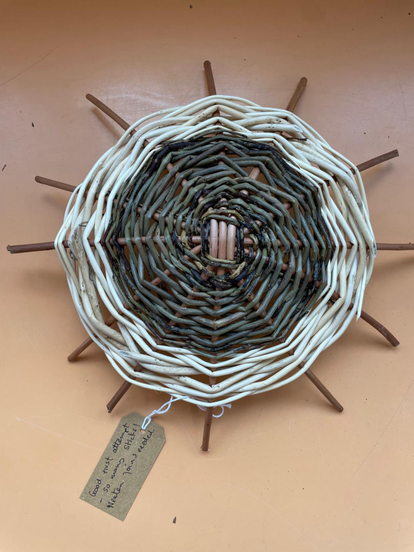 Homework base for one of the shoppers. All material was 5ft as an experiment and to use up some chunky 5ft White Willow that had been soaked. Alternated white/ green.