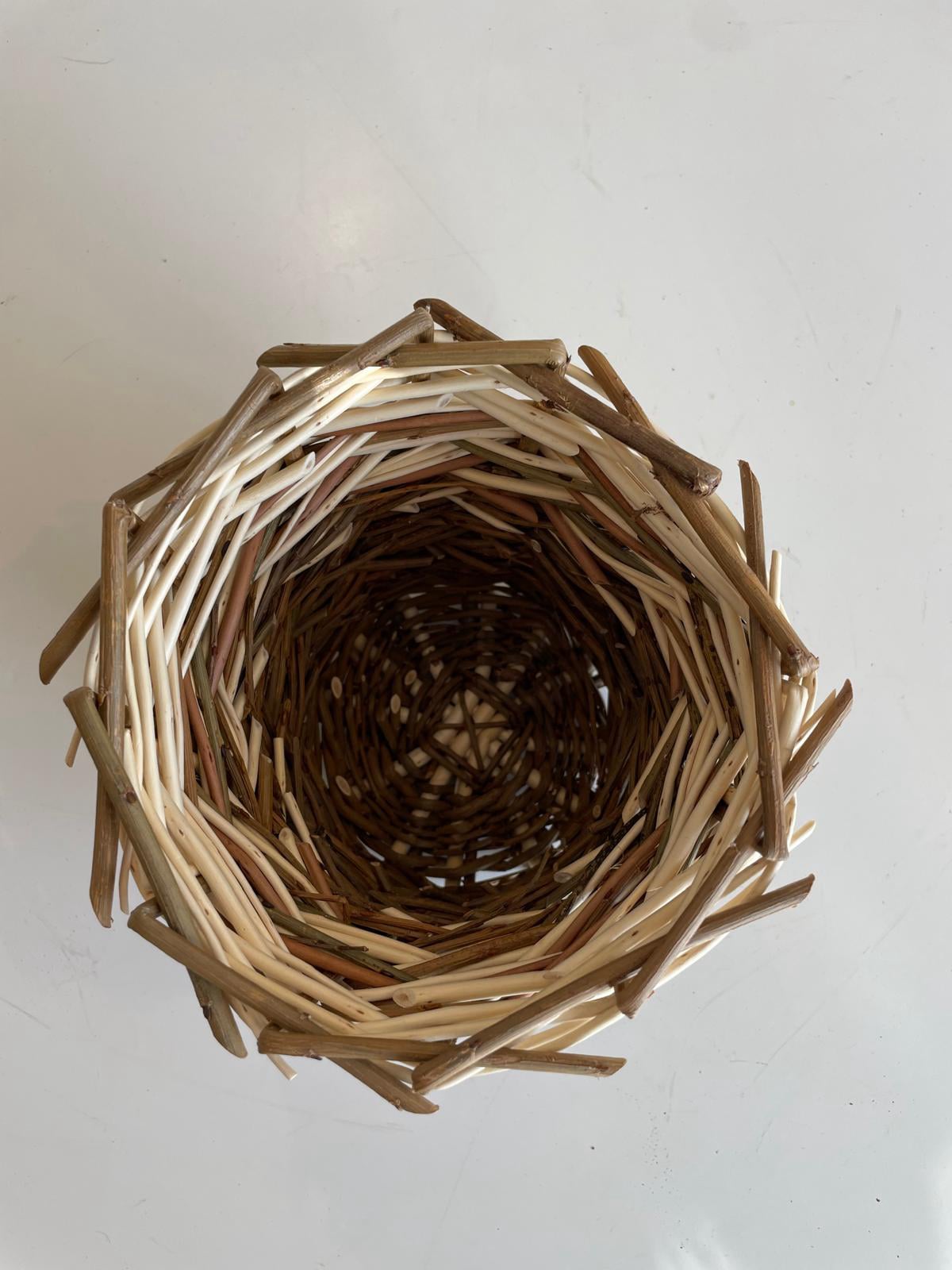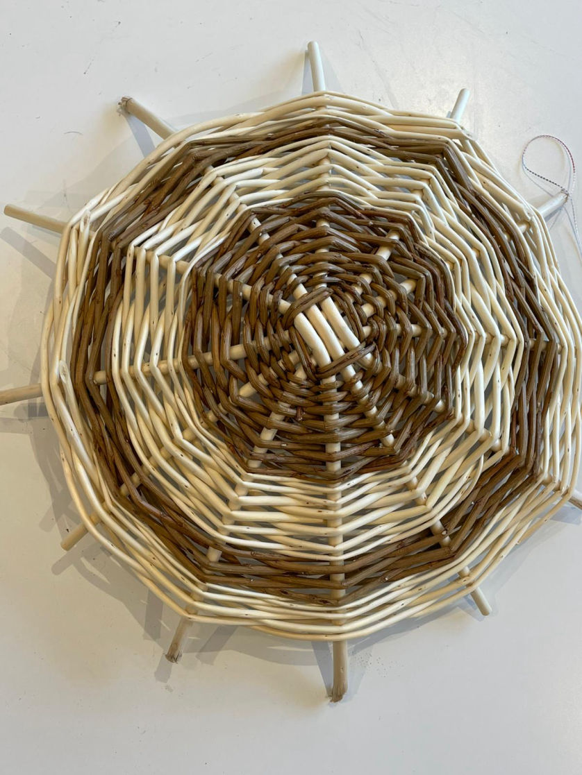 This base ended up bigger than I'd hope but using longer willow will obviously produce a wider base. The chunkier material also left more gaps and the joins are more obvious.