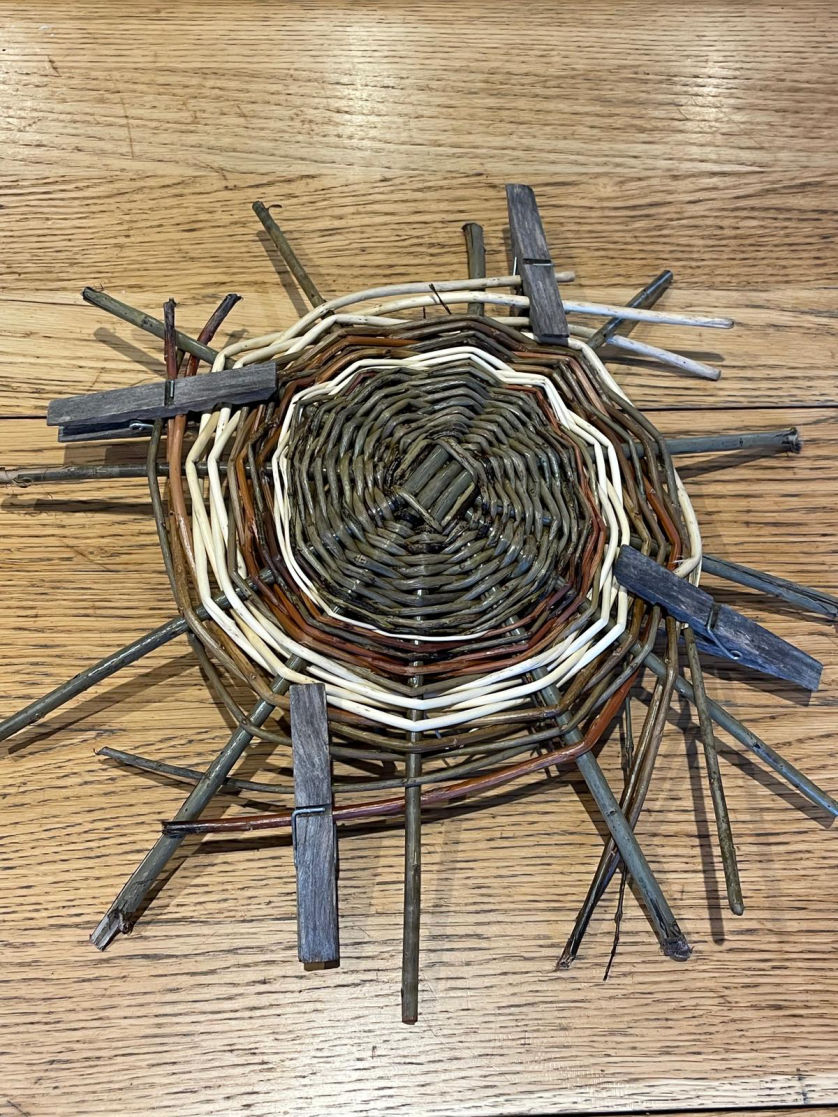 I think using finer base stakes for a little basket would work better in terms of finished product and actually working the willow.