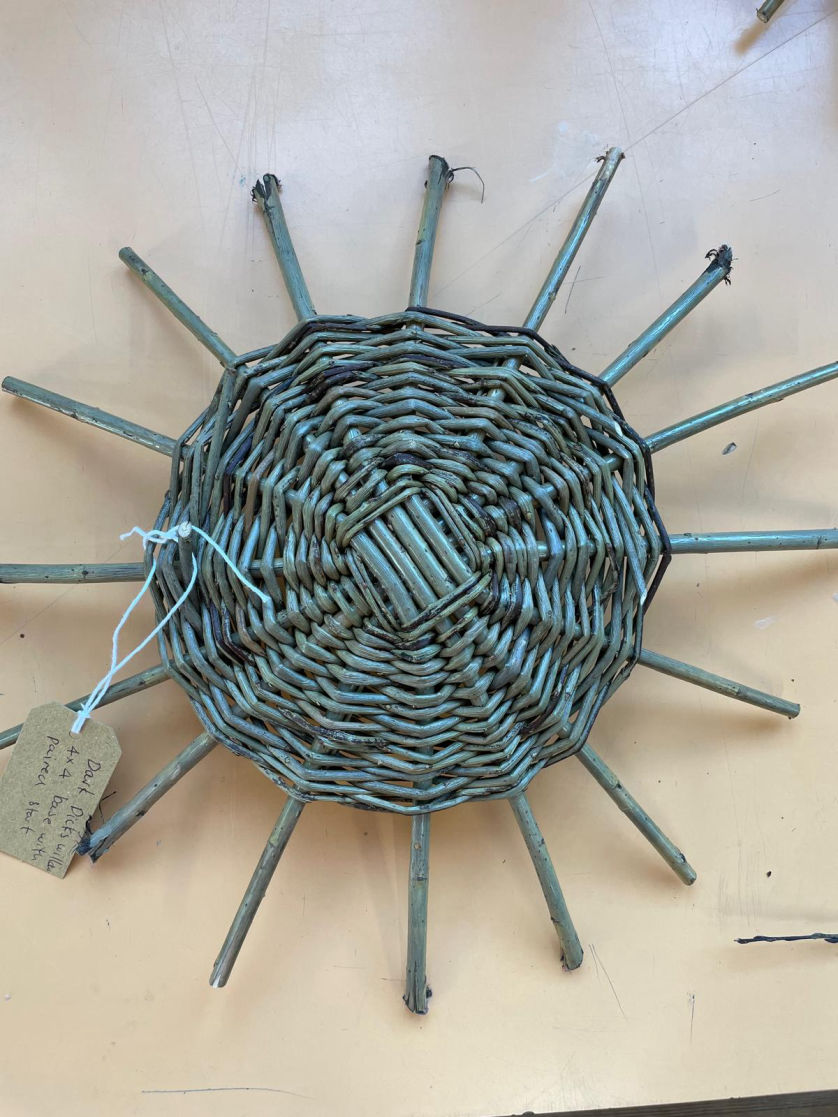 Tried out weaving the opposite way to the previous two bases. Pleased with the result.Not as domed as a result of working inside out.