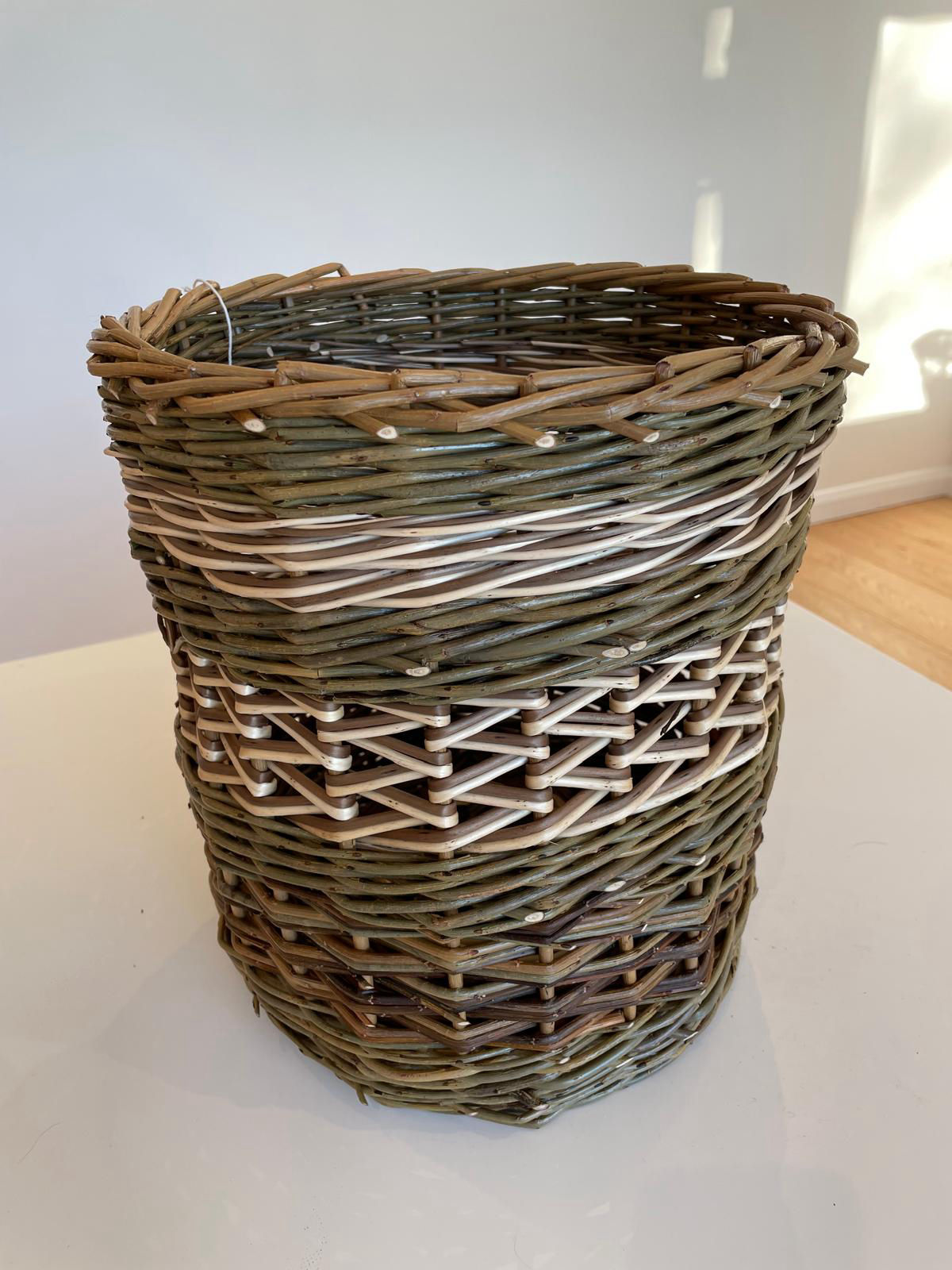 This was an in between classes mini basket for my son Freddie, as he is right into the basket making. I also wanted to have a go with English randing. This used alternative colour willow, which has produced a lovely colour effect.
